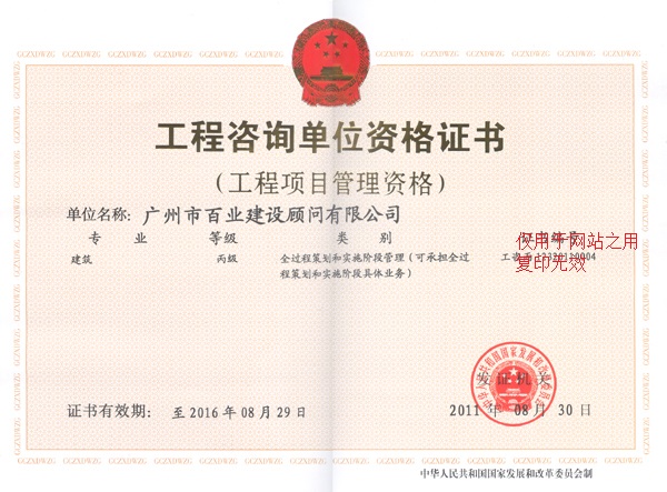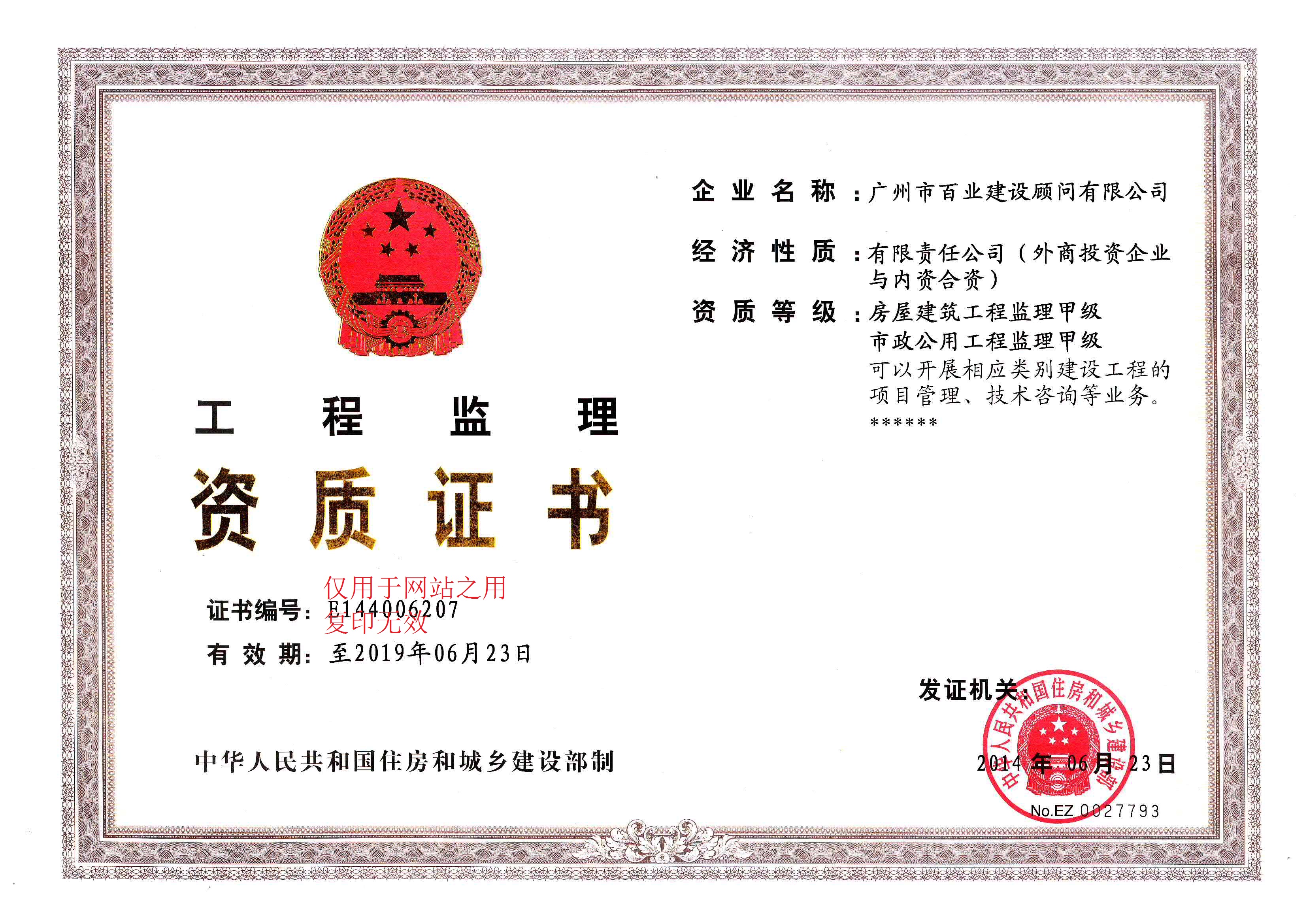 百业建设顾问有限公司是经国家建设部核准资质的建设工程专业型顾问公司,现具甲级工程监理,甲级招标代理及甲级造价咨询三甲资质。近年,本公司更获选为 "广东省工程造价协会第一届优秀会员单位"。